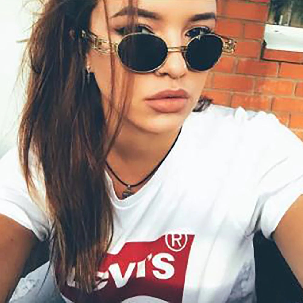 Steampunk Oval Small Metal Frame Men Hip Pop Sunglasses